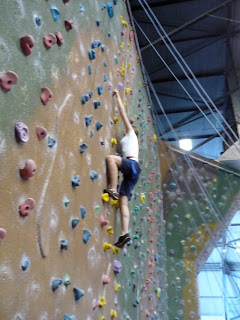 We have been rockclimbing twice now and the teachers haven't had a chance because we are busy supervising. So this was a cluster meeting for the South group and we got to have a go!! It was funny because when we got up the walls we could see that us encouraging the children by saying "you can do it"was a bit rich when we hadn't tried it. It was amazingly strenuous getting up some walls - and it bit scary going over the wood and chain bridge.