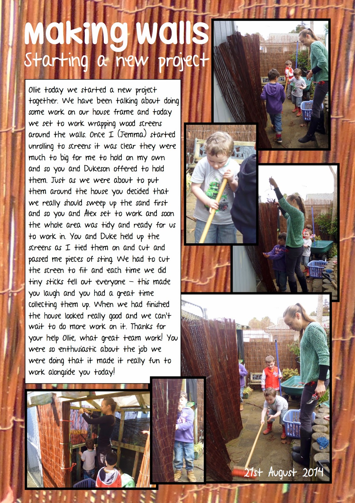 We had a house frame and it was sitting out in the playground. We decided to move it and do some renovating and have had a willing and capable group putting the walls on. It will be a great playhouse!! thanks team.